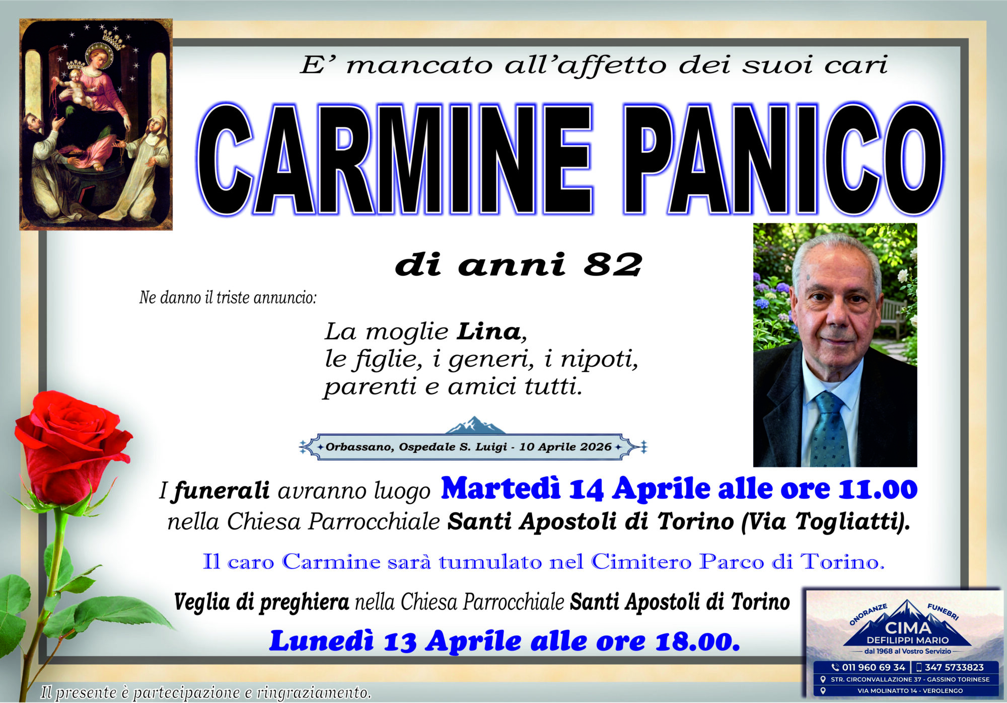 CARMINE PANICO di anni 82 Lascia un pensiero, sarà nostra cura farlo prevenire alla famiglia Annulla rispostaIl tuo indirizzo email non sarà pubblicato. I campi obbligatori sono contrassegnati *Commento * Nome Email Sito web Salva il mio nome, email e sito web in questo browser per la prossima volta che commento.