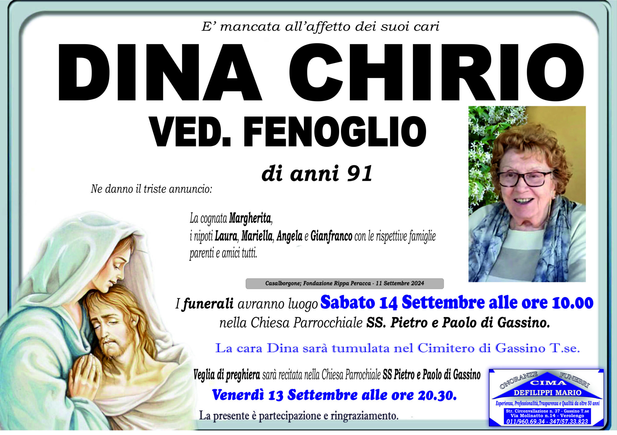DINA CHIRIO Ved. FENOGLIO di anni 91