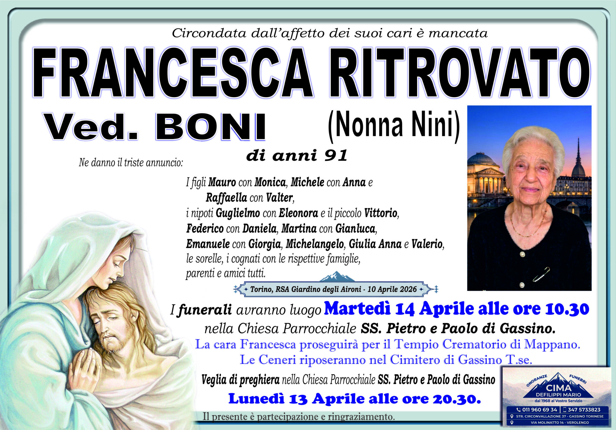 • FRANCESCA RITROVATO VED. BONI di anni 91