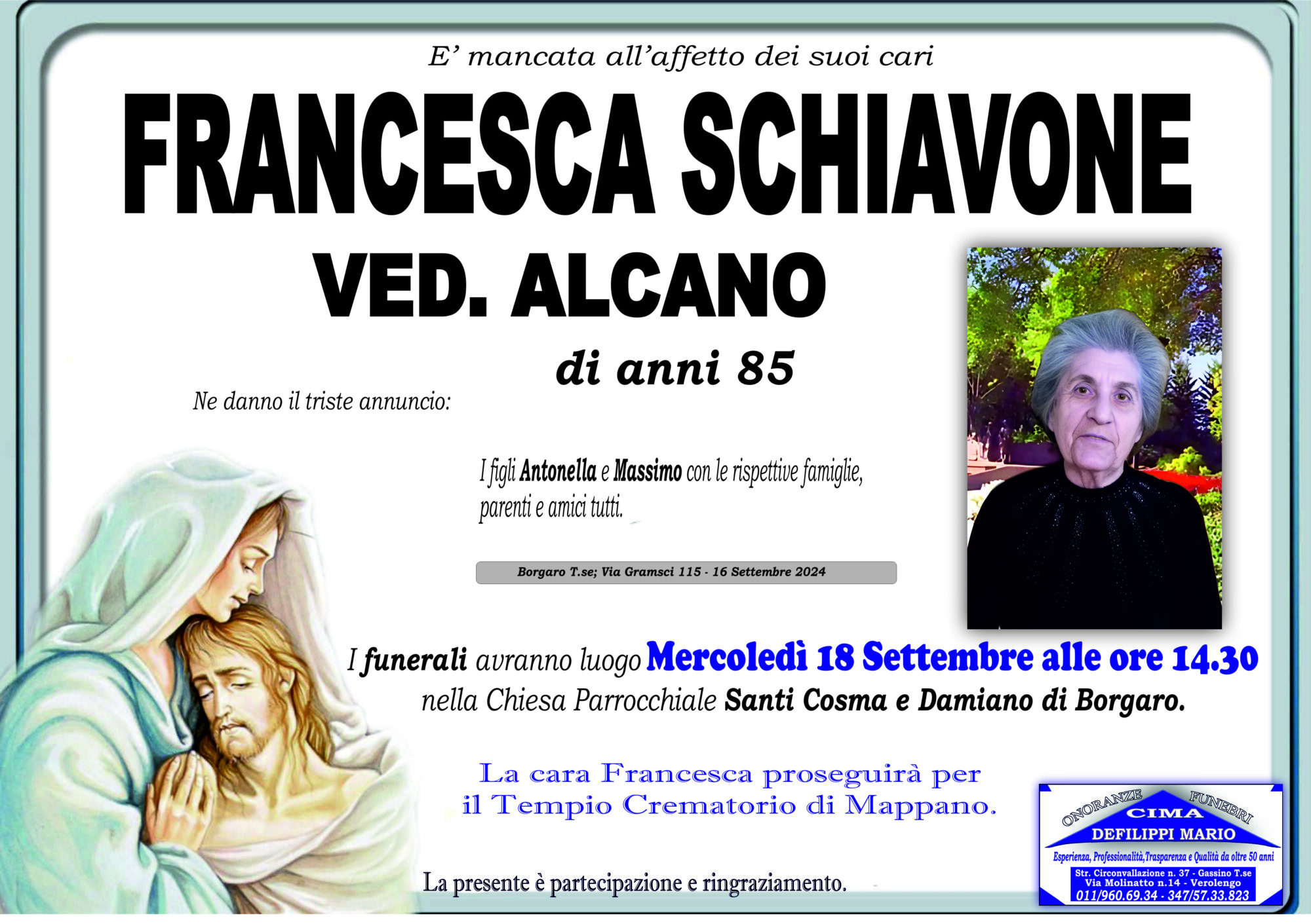 FRANCESCA SCHIAVONE Ved. ALCANO di anni 85 1 commento michele, graziella,sabino,luana il Settembre 17, 2024 alle 10:27 am Anche se le parole sono ben poca cosa in queste circostanze, vogliate accettare le nosrte più sincere condoglianze Rispondi Lascia un pensiero, sarà nostra cura farlo prevenire alla famiglia Annulla rispostaIl tuo indirizzo email non sarà pubblicato. I campi obbligatori sono contrassegnati *Commento * Nome Email Sito web Salva il mio nome, email e sito web in questo browser per la prossima volta che commento.
