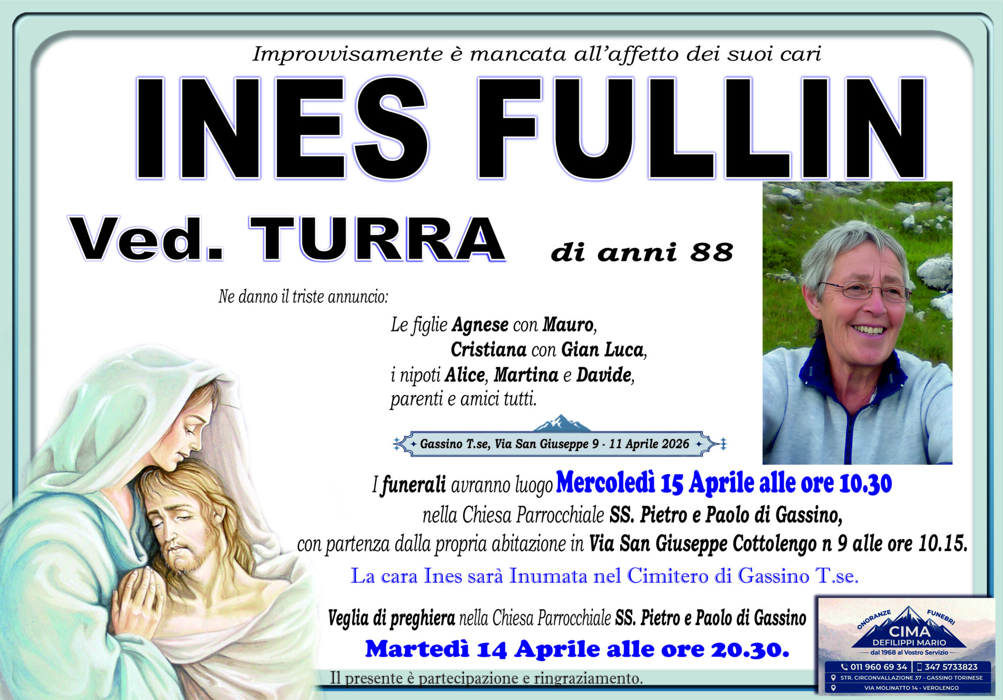 INES FULLIN VED. TURRA di anni 88 Lascia un pensiero, sarà nostra cura farlo prevenire alla famiglia Annulla rispostaIl tuo indirizzo email non sarà pubblicato. I campi obbligatori sono contrassegnati *Commento * Nome Email Sito web Salva il mio nome, email e sito web in questo browser per la prossima volta che commento.